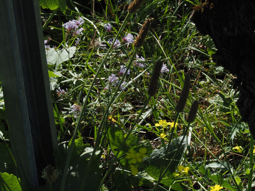 Nutzpflanzen – vor langer Zeit von irgend jemandem einmal gepflanzt oder einfach selber gewachsen: Schnittlauch, Erdbeeren, Rosmarin. Seit der Pflanzenschutz biologisch läuft, geniessen wir die kleinen Zusatzernten.