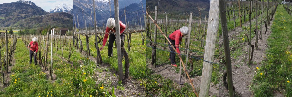 Im Winter 2020 / 2021 bearbeitete ich alle Zeilen unter den Reben mit der Hacke: Jäten und Lockern. Damit anschliessend nicht wieder dieselben Gräser und Kräuter wachsen wie vorher, beispielsweise Winden, welche in die Reben wachsen, säten wir eine spezielle Samenmischung ein. Beraten hat uns Frau Bea Steinemann vom FiBL, Frick. Das ganze Jahr haben wir gespannt verfolgt, welche Blumen wachsen oder sogar blühen. Garantiert wird auch das 2022 nochmals für Überraschungen sorgen.
